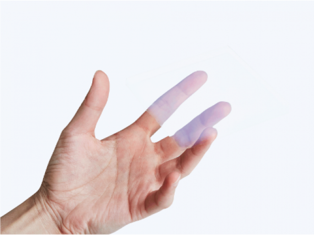 モノリスタイプSUFAは、板状のエアロゲルで、SUFAの最も大きな特徴である透明性を最大限に活かすことができます。バインダー(接着物質)は入っていません。