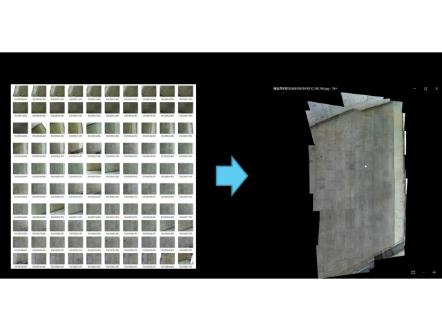 点検計測用パノラマ合成は、景色の場合と異なり、正確な位置合わせが必要です
