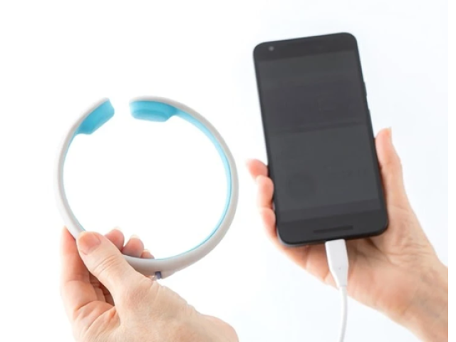 嚥下音と判定されると、ネックバンドのLEDが緑に、嚥下音以外の音を検出すると、LEDが赤く点灯します。
