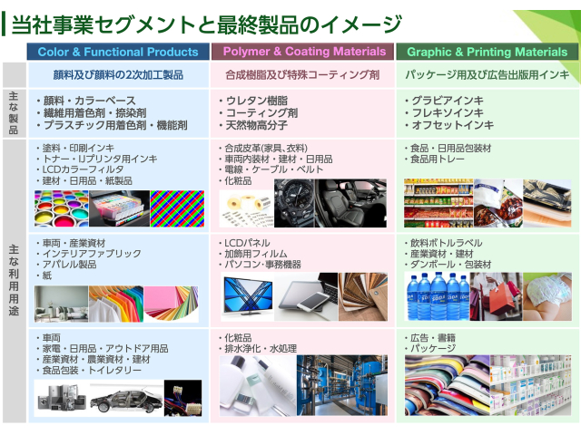 「彩り」と「アイディアをカタチにする」化学メーカーです