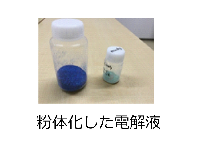 ・回収したバナジウムから溶解、晶析プロセス等を経て電解液を安価に製造する技術及び輸送費を大幅に低減する電解液の粉体化技術。